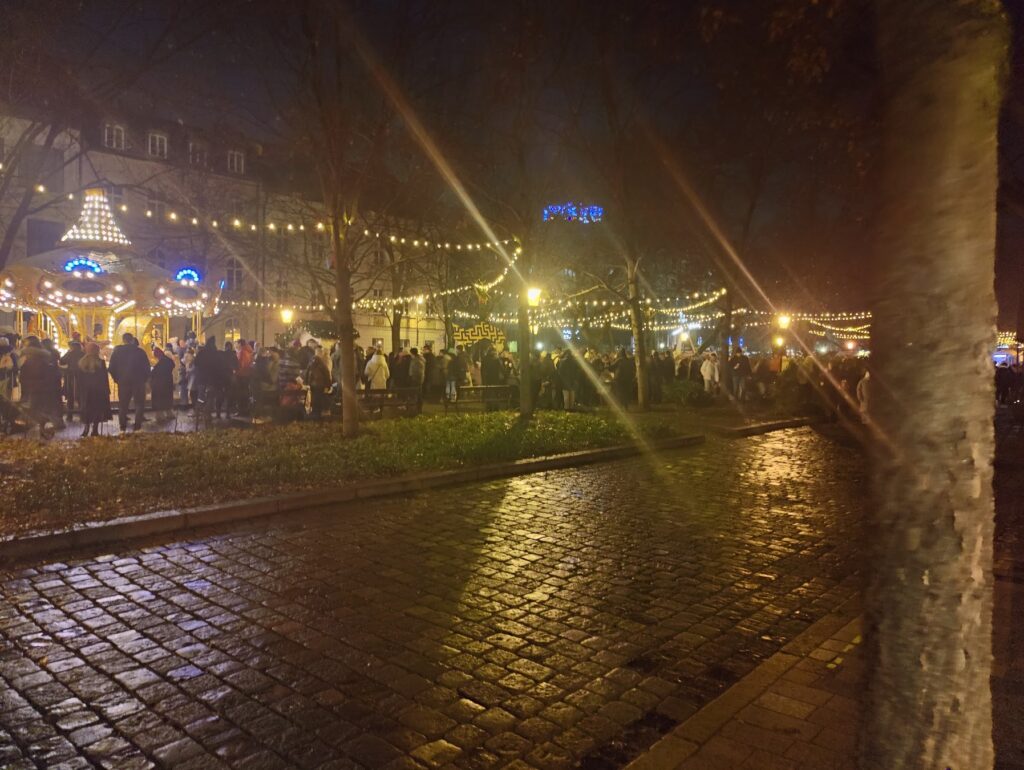 Az eső finoman, kitartóan esett. Nem zavart, inkább hangulatot adott. Az utcákon hömpölygött a tömeg, mindenki vásárolt, sietett, nézelődött. Mi azonban más cél miatt érkeztünk. A vár alatt elhaladva átkeltünk a hídon, majd beléptünk a parkba. Innen már csak néhány száz méter volt az út.